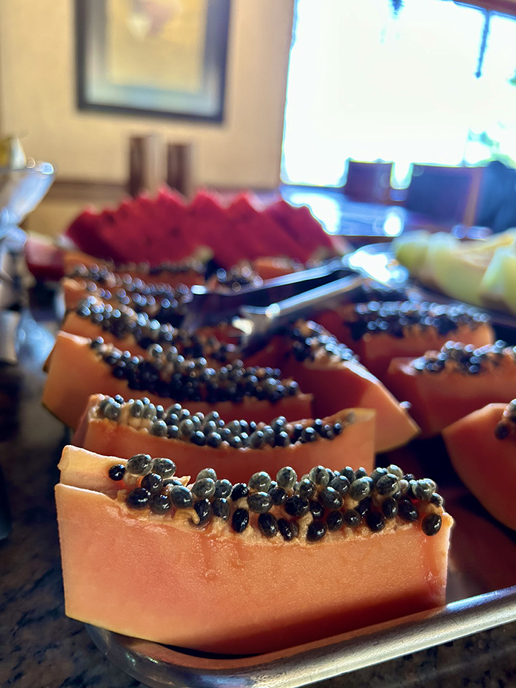 O café da manhã é um dos destaques do hotel, servido em lugar aconchegante e com uma mesa com dezenas de itens como deliciosos bolos, pão de queijo quentinho, frios, sucos e muito mais.